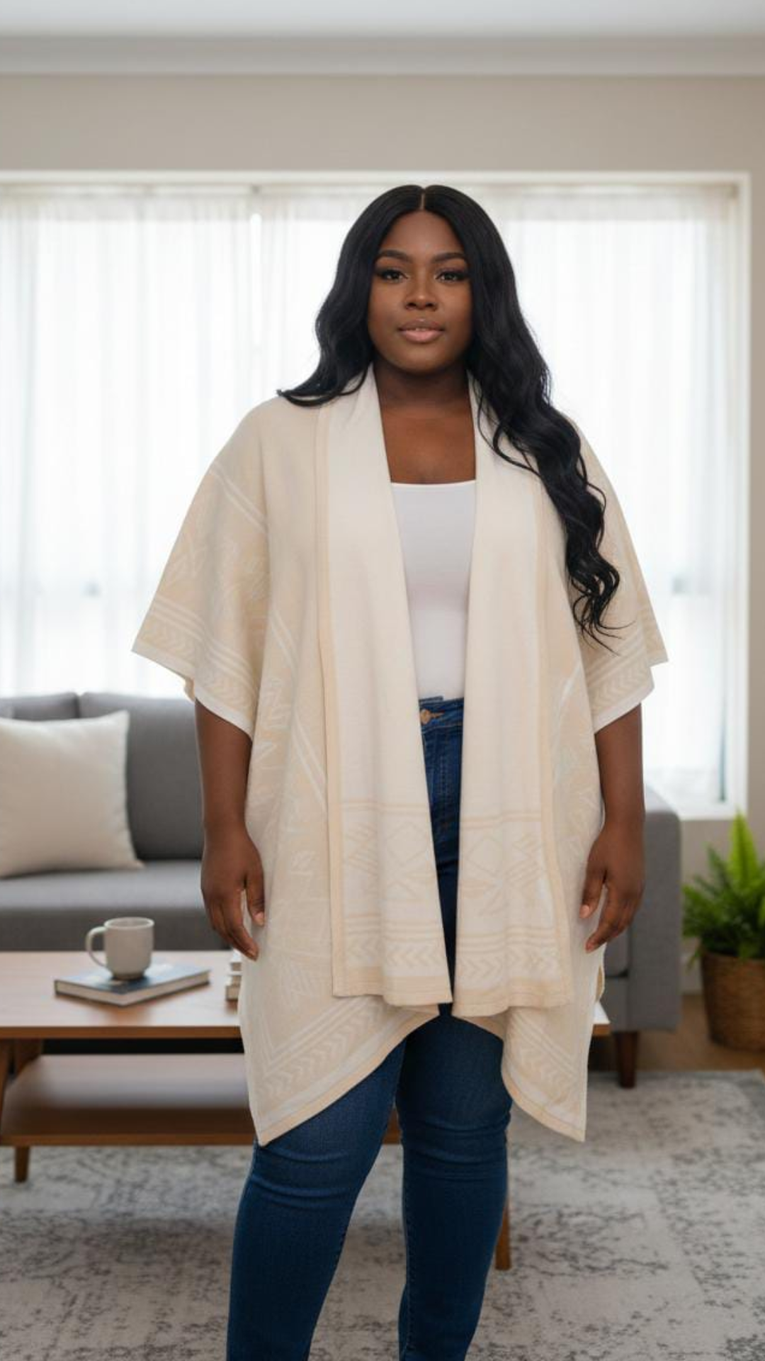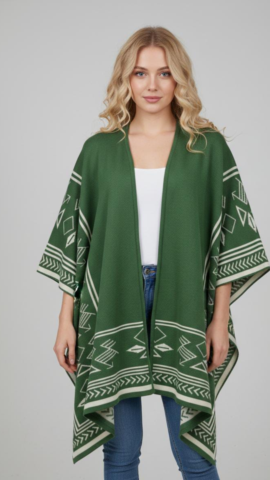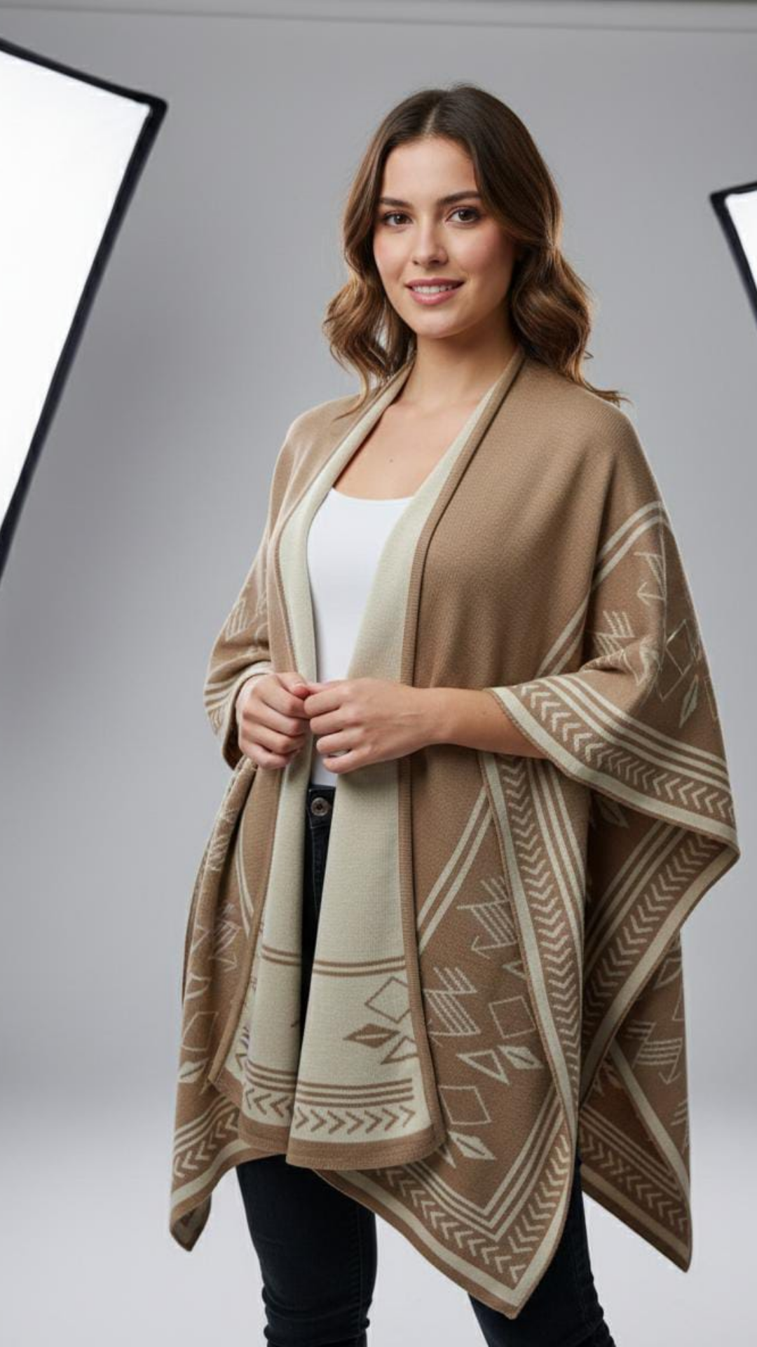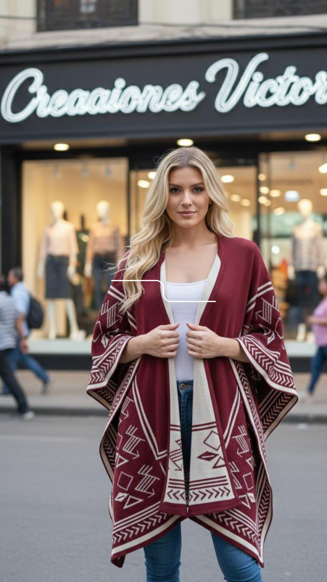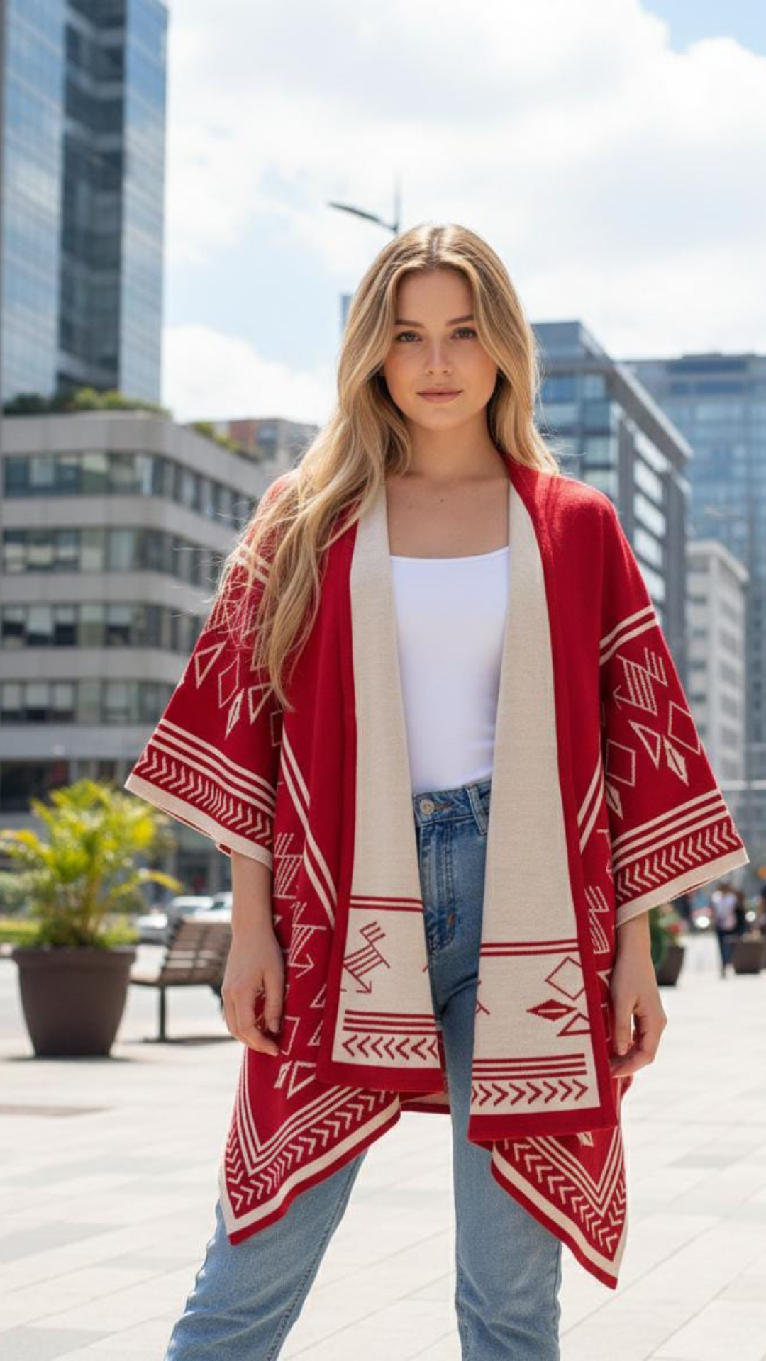 Herencia que se lleva con estilo.El Chal Herencia combina tradición y diseño para acompañarte en cualquier momento del día. Su silueta amplia y sus detalles geométricos lo convierten en una prenda única, perfecta para elevar cualquier outfit.Úsalo con jeans, vestidos o looks casuales y deja que tu estilo hable por ti.